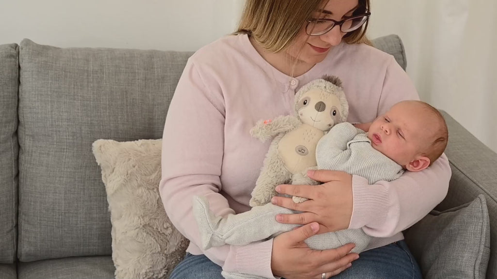 - IDEALE SLAAPHULP - Met 10 aangename geluiden en knuffelzachte materialen betovert de knuffelluiaard elk babyhart - ideaal als eerste vriendje in het babybedje